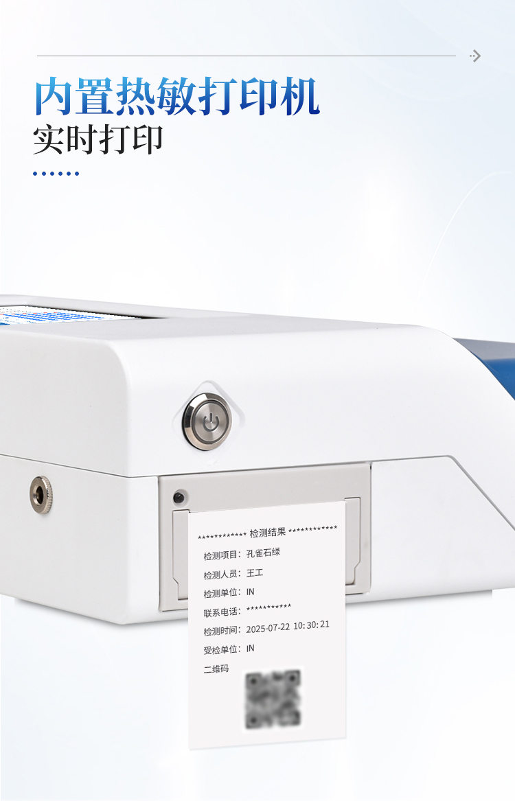 5、内置热敏打印机,检测完成即可现场打印标准报告,提升工作效率。