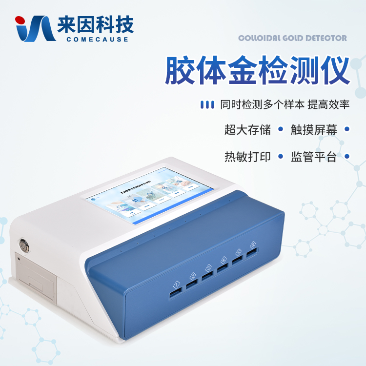 本仪器是一款专为快速、精准定量或半定量分析胶体金免疫层析试纸条(GICA)设计的高性能光学检测设备。仪器集成了先进的光电检测技术、智能数据处理平台、高通量设计及强大的网络功能,通过高稳定性光学系统实现对免疫层析结果的可靠读取、智能分析与即时报告输出。其坚固耐用的设计和便捷的操作流程,使其成为实验室研究与现场快速检测(POCT)的核心仪器之一。