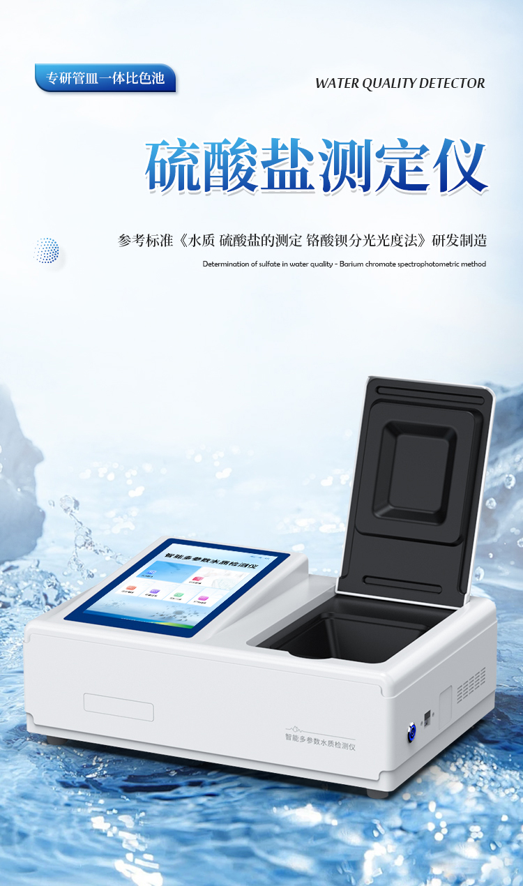 水质硫酸盐测定仪是参考标准《水质 硫酸盐的测定 铬酸钡分光光度法》研发设计制造,适用于国内外众多检测标准。