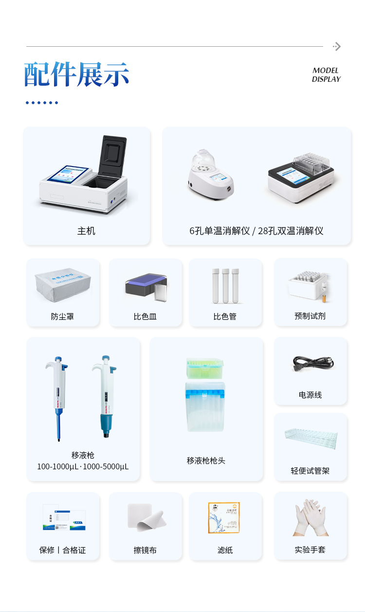 比色方式:比色管(16mm消解比色一体管)、30mm比色皿;