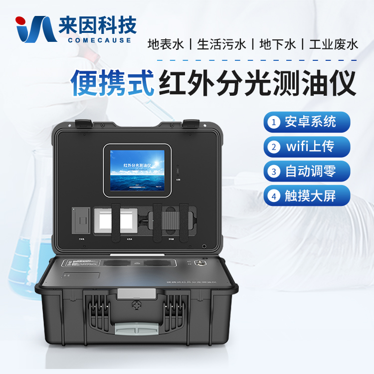 简要描述: 便携式红外测油仪采用了国标规定的校正系数法检测原理,严格按照国标标准公式,使用20mg/L正十六烷,20mg/L异辛烷,100mg/L苯进行校准,最终带入校准公式算出仪器校正系数进行测量样品(也可以使用标准曲线法进行检测);内置无线网络功能,可外接WIFI,实现联网上传功能。