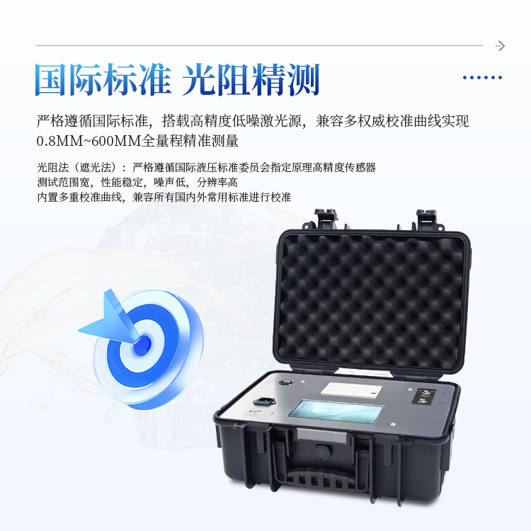 内置ISO4406、NAS1638、SAE4059、GJB420A、GJB420B、ГOCT17216、GB/T14039等颗粒污染度等级标准
