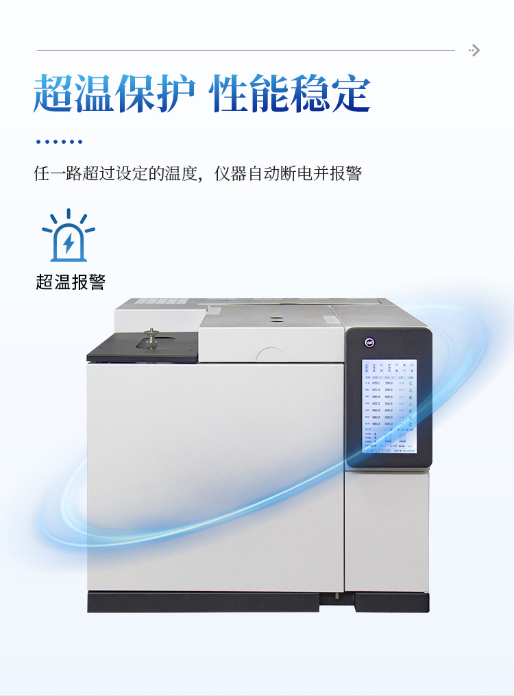 ● 载气具有压力保护功能,气体压力低 0.4mpa 时仪器自动切断电源有效保护色谱柱使用安全。
