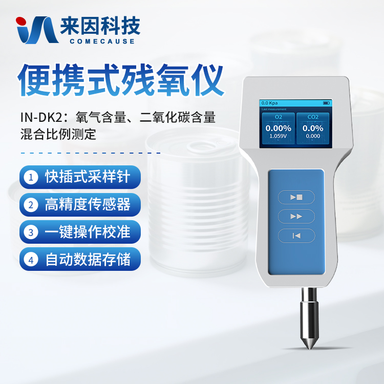 简要描述: 顶空分析仪IN-DK2又称顶空气体分析仪,参考《JJG365-2008电化学氧测定仪》研发生产,用于密封包装、瓶装、罐装等中空包装容器中氧含量、二氧化碳含量、混合比例的测定;可快速、准确地对生产线、仓库、实验室等气体成分含量和比例进行评定;这样可以指导生产,确保产品的货架期。