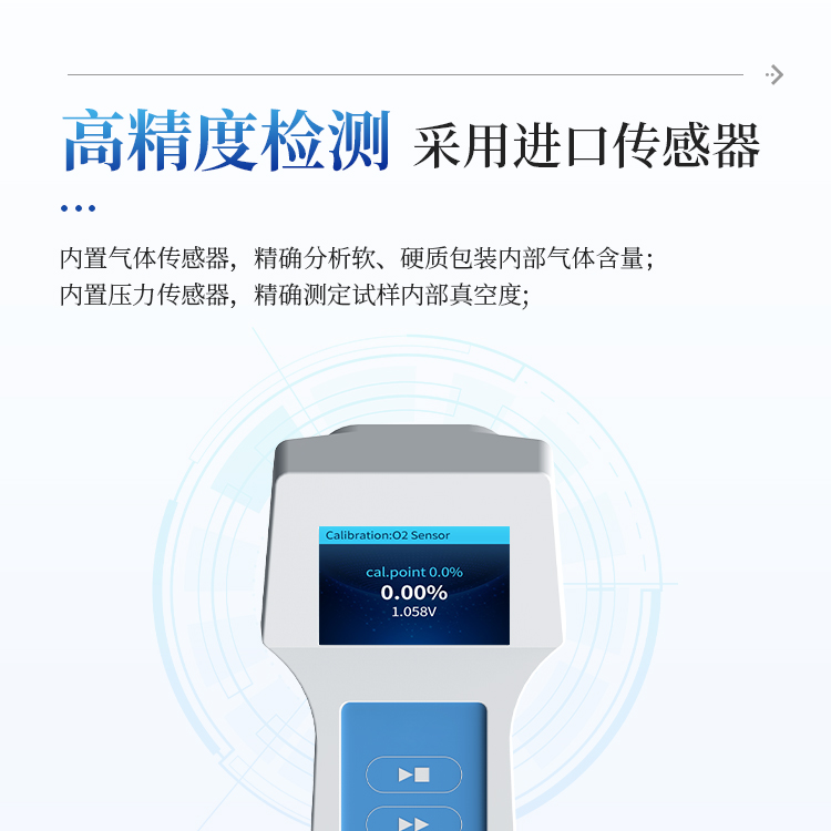 3.内置气体传感器,可精确分析软、硬质包装内部气体含量;