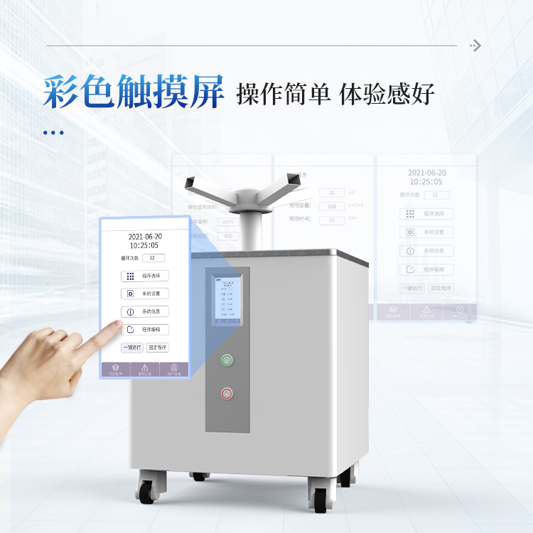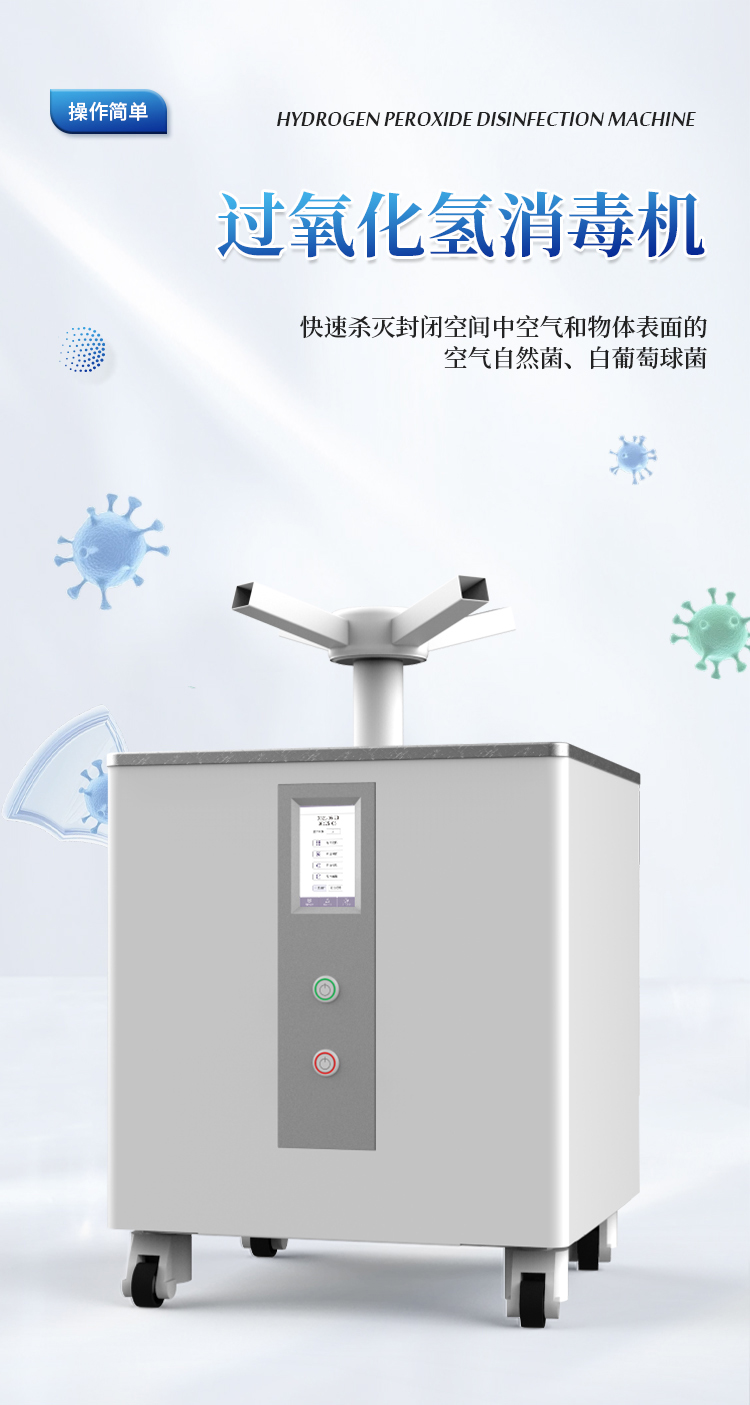 过氧化氢消毒机利用低浓度的过氧化氢消毒剂来实现消毒效果;主要用于室内环境和中央空调系统,可快速杀灭封闭空间中空气和物体表面的空气自然菌、白葡萄球菌。使用低浓度的过氧化氢,每立方米仅需几毫升的用量,且环境湿度仅上升少许。在消毒过程中,无需加热、中和等过程,方便快捷。广泛应用于医院、疾控中心、实验室、生物制品等领域。