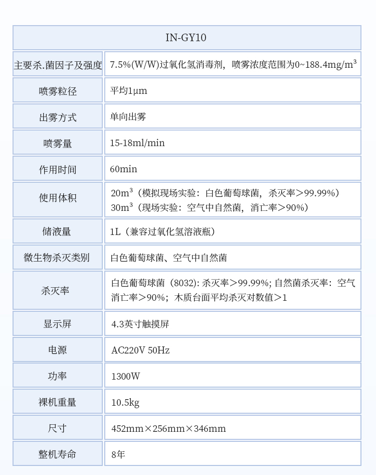 1、主要杀菌因子及其强度:7.5%(W/W)过氧化氢消毒剂,喷雾浓度范围为0~188.4mg/m3