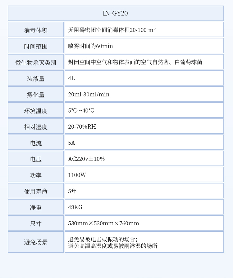 6、使用体积:20m3(模拟现场实验:白色葡萄球菌,杀灭率>99.99%)30m3(现场实验:空气中自然菌,消亡率>90%)