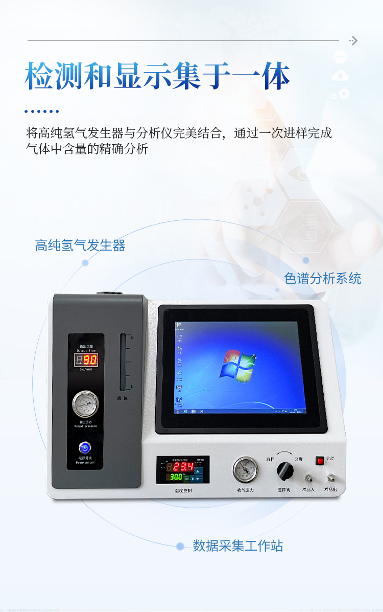1、将高纯氢气发生器,分析仪完美结合,通过一次进样可以完成气体中含量的精确分析。