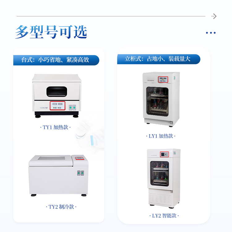 台式恒温小型振荡器专为需求用地面积小的用户设计。具有小外形体积,大工作空间的特性。可以放置在坚固的台面或地面。该型摇床装备PID控温系统和无刷直流电机控制系统,可满足对温度和速度有较高要求的用户需求。