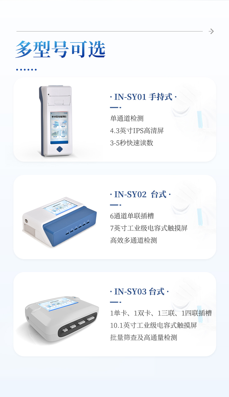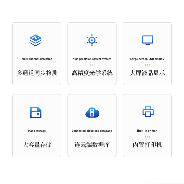 11、检测时间:< 5秒 (单卡及多联卡);可对样本进行胶体金定性/半定量检测。