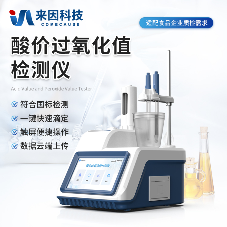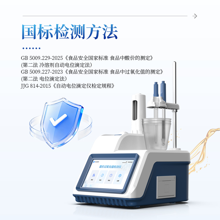 简要描述: 电位滴定法酸价过氧化值检测仪基于自动电位滴定技术,专用于食品中酸价和过氧化值的精准测定。遵循食品安全国家标准预置酸价与过氧化值标准化检测程序,搭配高精度滴定系统,实现“一键检测”,同时兼具常规滴定模式。可为食品企业、质检机构及科研院所提供油脂氧化稳定性评价解决方案。