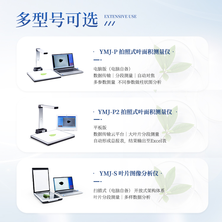 YMJ-P2拍照式叶面积仪(平板版)由图像采集设备和图像处理软件组成,采用本公司新开发的图像识别软件,根据叶片轮廓特征提取、图形实物转换、边缘检测等技术,能够形象并快速得到所测叶片面积、周长、虫洞数量等参数,并且可以将叶片分段测量,系统会自动合并两张图片并综合分析各参数。相比传统的叶面积,具有测量更快速简便、结果更形象客观、数据多样并大大减少了人为操作带来的误差。